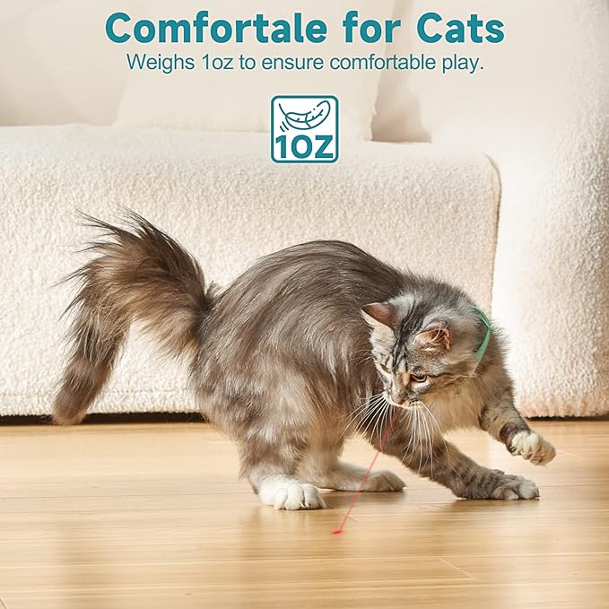 Whether you're the proud parent of a sprightly kitten or a majestic mature cat, our collar is crafted to fit just right. Adjustable and comfortable, it respects the fact that every cat is unique. After all, your cat deserves a toy tailored to them, not a one-size-fits-all solution.
