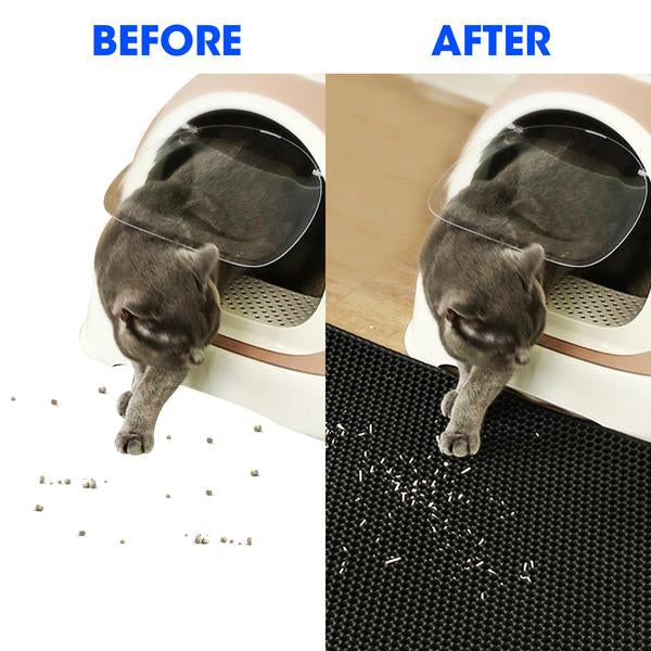 Just place the litter box on top of the dual-layered mat, and watch as the hallow ridges comfortably spread your cat's paws, which greatly reduce scatter and trap excess litter. Not only will it keep the surrounding are clean, but the litter mat uses a non-slip material to keep the litter box in place. Plus the mat is a cinch to clean.